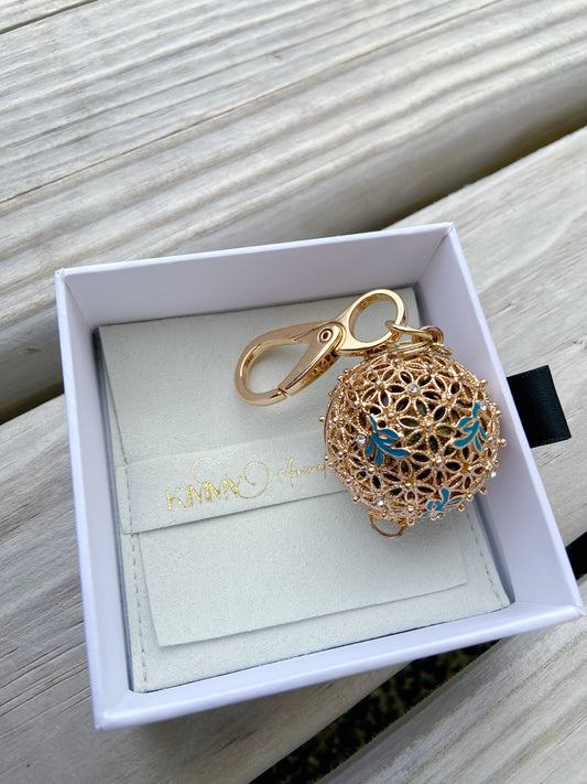 Personalized Orchid & Gold Lace Sphere Keychain | Premium Edition